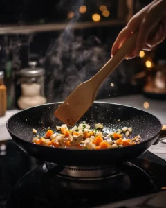 Using the same pan helps retain all the flavorful browned bits left behind by the chicken. Add the chopped onion and cook over medium heat for 3 to 4 minutes, stirring frequently. The onion should become soft, translucent, and slightly sweet. If the pan looks dry, you may add a small drizzle of olive oil to prevent sticking.