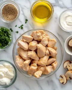 Ingredients for Creamy Chicken Stroganoff