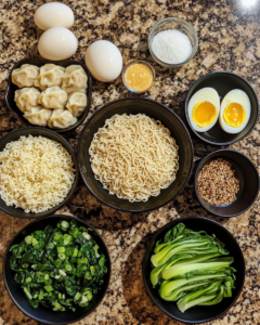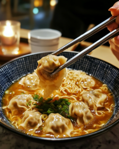 Inspired by the warmth of Japanese-style ramen shops and the practicality of home cooking, this recipe blends convenience with depth of flavor. Savory dumplings simmer gently in a fragrant broth, while soft boiled eggs add creamy richness. Fresh greens provide balance and brightness. The result is a bowl that feels restaurant-worthy yet simple enough to make in your own kitchen.