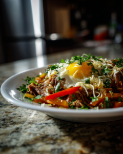 The smoky depth of brisket pairs beautifully with soft, creamy eggs, creating a dish that feels indulgent yet balanced. It’s rich without being heavy, flavorful without being complicated. Whether served as a plated breakfast, wrapped in tortillas, or spooned over crispy potatoes, this meal delivers comfort in every bite.