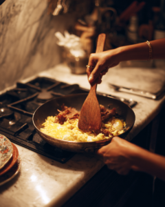 • Keep heat moderate to avoid dry eggs.